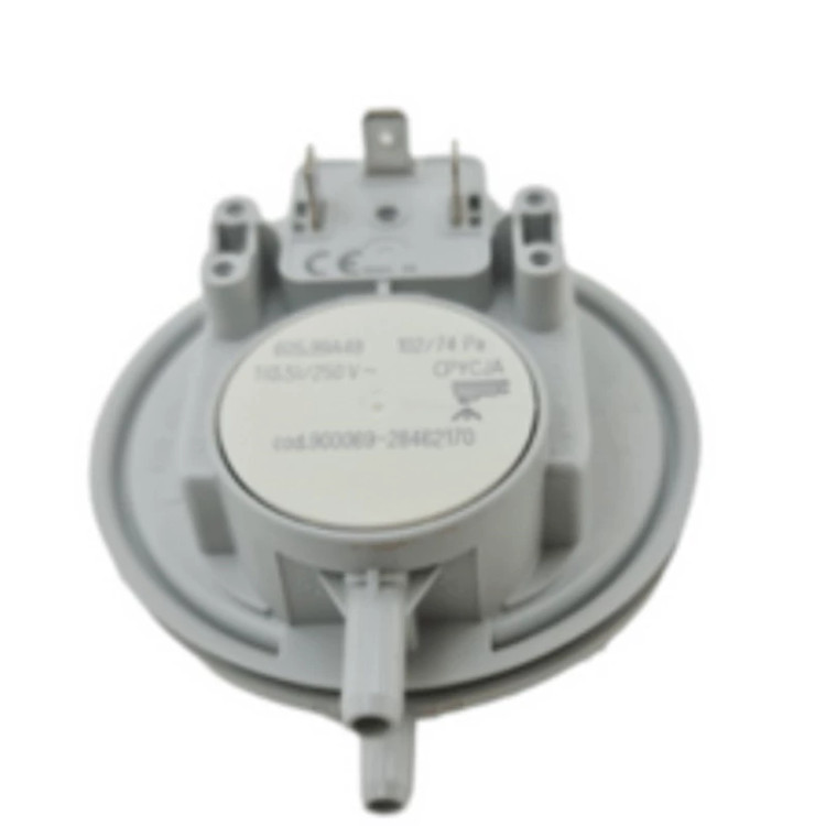 کلید فشار ایمنی دود 24 (پرشر سوئیچ دود) چیست؟ کلـید فشار دود 24 از یک دیافراگم و میکروسوئیچ تشکیل شده! وظیفه این قطعه تشخیص باز یا بسته بودن مسیر دودکش و اطمینان از احتراق کامل می باشد. پرشر هوا از طریق دو شیلنگ (در برخی موارد یک شلنگ) به ونتوری فن دستگاه متصل می شود.