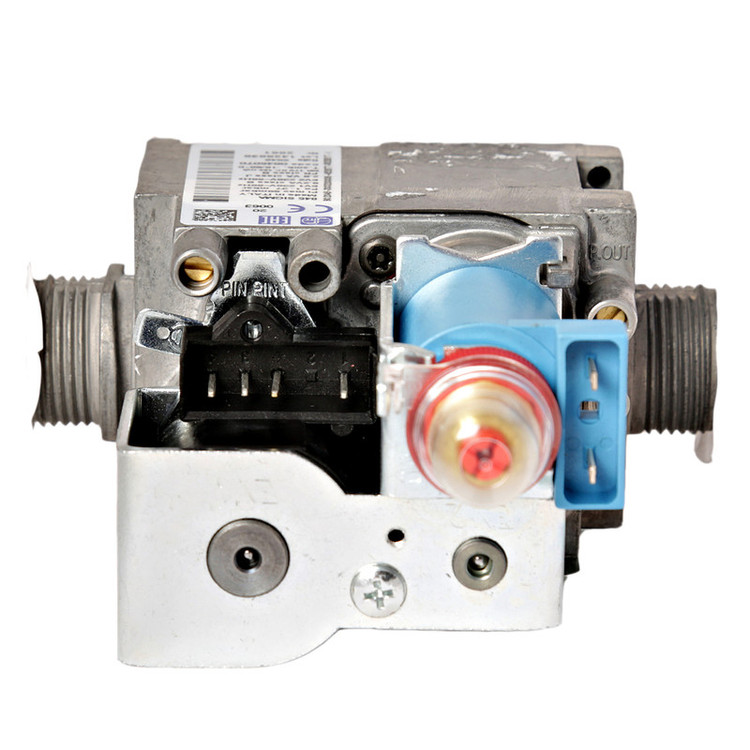 وظیفه شیر برقی رساندن گاز و تنظیم جریان گاز به مشعل می باشد . جنس شیر گاز از آلومینیوم می باشد. .شیرگاز دارای یک قسمت تنظیم کننده جریان ( مدولاتور) می باشد که با برق ولتاژ پایین کار می کند. شیر برقی می تواند با تغییر جریان الکتریکی ارسالی از برد الکتریکی، میزان جریان گاز به مشعل را تغییر دهد . به عبارت بهتر وظیفه شیر گاز، تنظیم شعله ( کوتاه و بلند کردن شعله به طور پیوسته ) می باشد . شیر برقی گاز همچنین دارای قسمتی است که برق شیر و ترانسفورماتور احتراق اصلی را تامین می نماید .